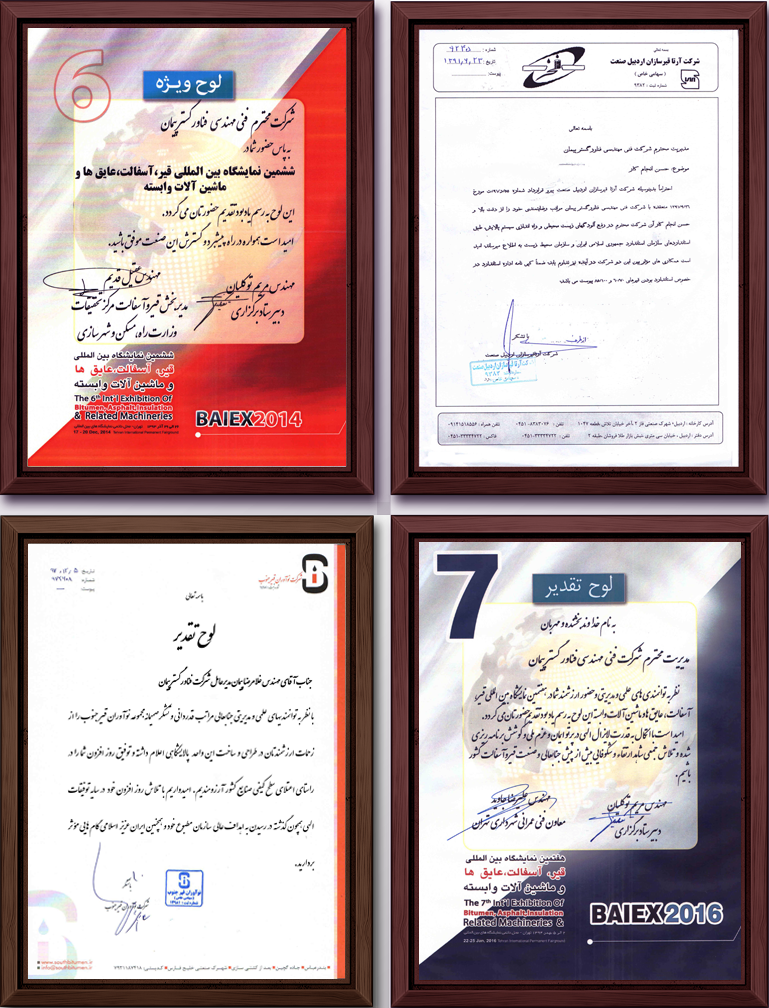 مفتخریم که محصولات تولیدی واحدهای طراحی شده این شرکت موفق به اخذ تأییدیه های پژوهشگاه صنعت نفت، اداره استاندارد، مرکز پژوهش و تحقیقات مسکن، راه و شهرسازی می باشند. در سیستم های طراحی شده نوین به هیچ عنوان از حرارت مستقیم در کل فرآیند تولید استفاده نگردیده و کلیه تجهیزات مجهیز به سیستم گرمایش داخلی (روغن داغ) و مبدل حرارتی برای تأمین گرمای مورد نیاز واحد می باشند.