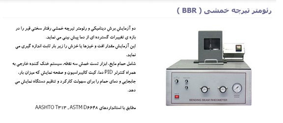 انجام آزمایش سختی قیر در دمای پایین توسط رئومتر اندازهگیری مقاومت برش دینامیکی، کاملاً قابل اطمینان نمیباشد. بنابراین پژوهشگران SHRP رئومتر تیرچه خمشی را تهیه نمودهاند تا به طور دقیق خواص قیر را در دمای پایین روسازی ارزیابی نمایند. دو آزمایش برش دینامیکی و تیرچه خمشی رفتار سختی قیر را در بازهی تغییرات گستردهای از دما پیشبینی مینماید. این آزمایش مقدار افت و خیزها یا خزش قیر را زیر بار ثابت اندازهگیری مینماید. دمای آزمایش به پایینترین دمای کارکرد روسازی بستگی دارد که در آن قیر بیشتر مانند جامد الاستیکی رفتار میکند. این آزمایش روی مواد قیری که در هر دو آزمایش لعاب نازک چرخشی و آزمایش محفظه تسریع پیری، پیر شدهاند ، انجام میپذیرد. لذا این آزمایش خصوصیات عملکرد قیر را که در معرض اختلاط گرم و همچنین پیرشدگی در دوره سرویس دهی قرار گرفته است ، اندازهگیری مینماید.