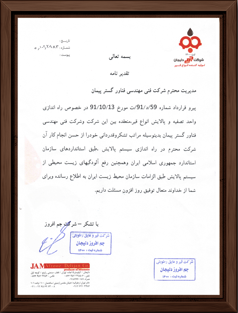 001 طراحی ، مشاوره و راه اندازی کارخانجات نسل سوم تولید انواع قیر