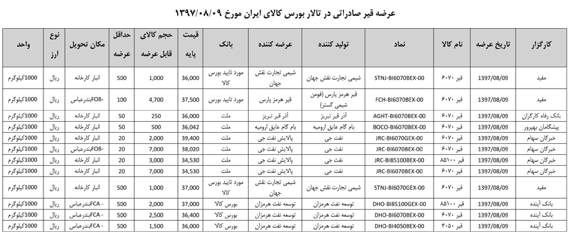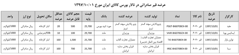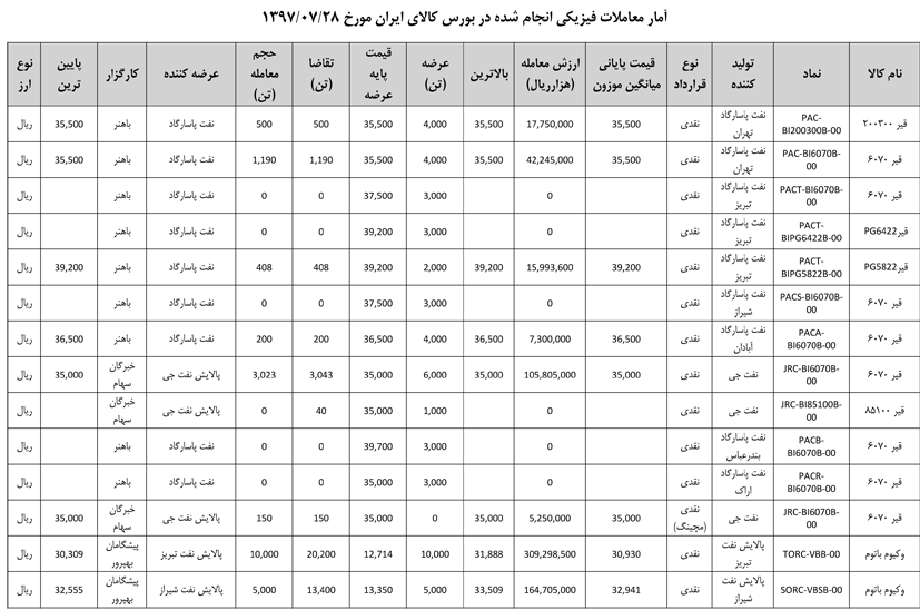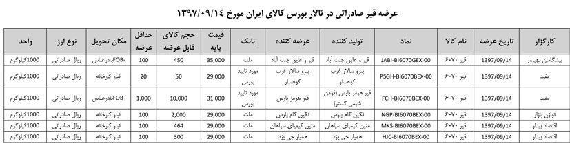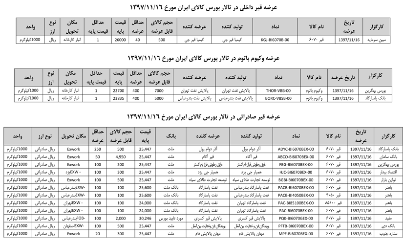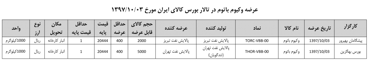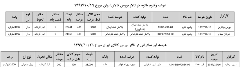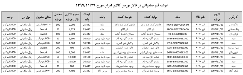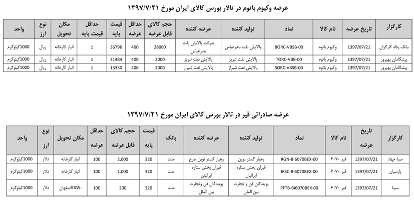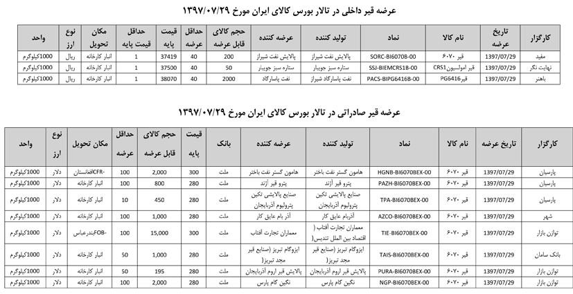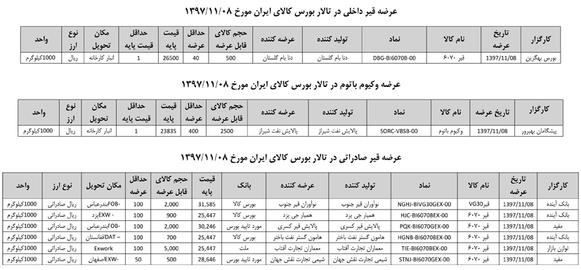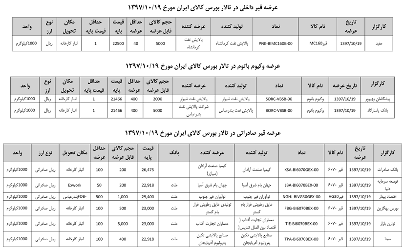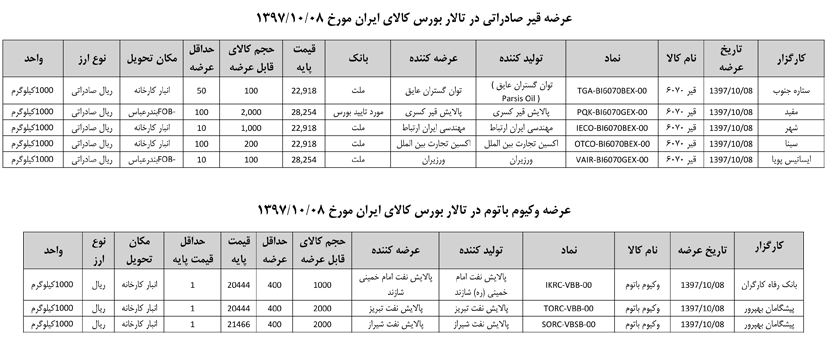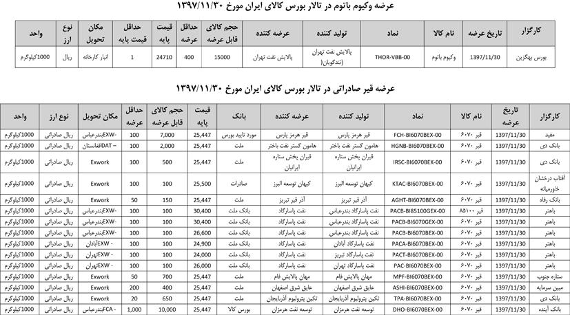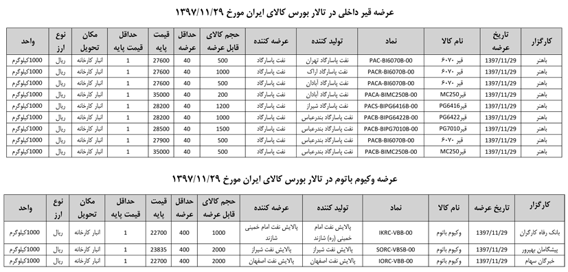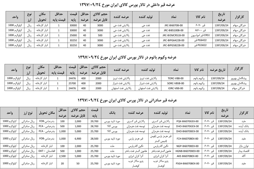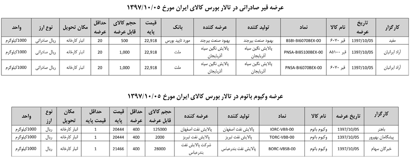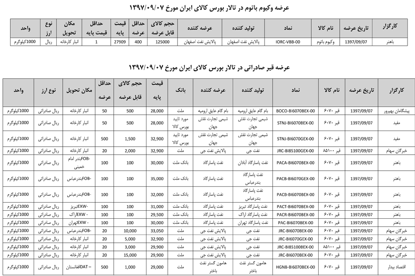 013 اطلاعیه عرضه قیر و مشتقات نفتی در تالار بورس ایران